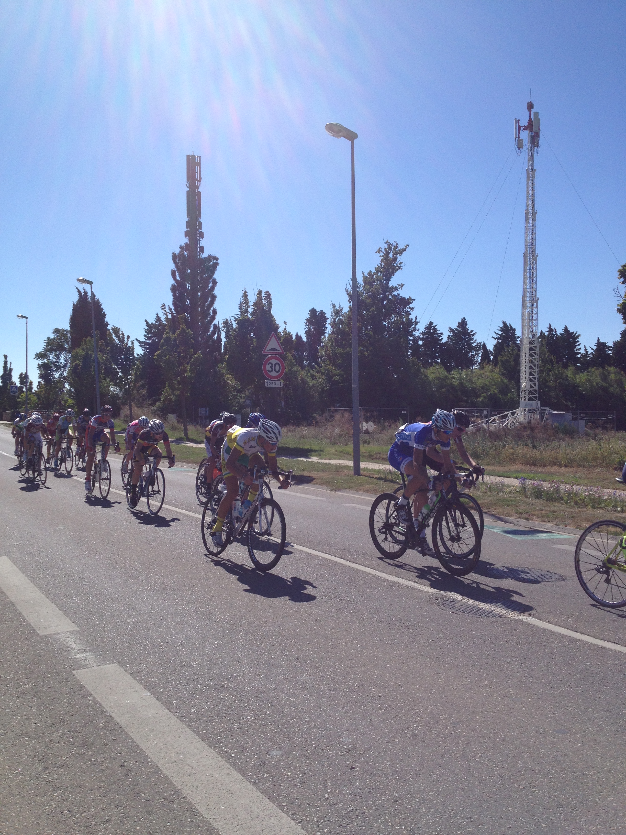 Dès le deuxième tour  surement à cause du vent le peleton se divise en plusieurs groupes.