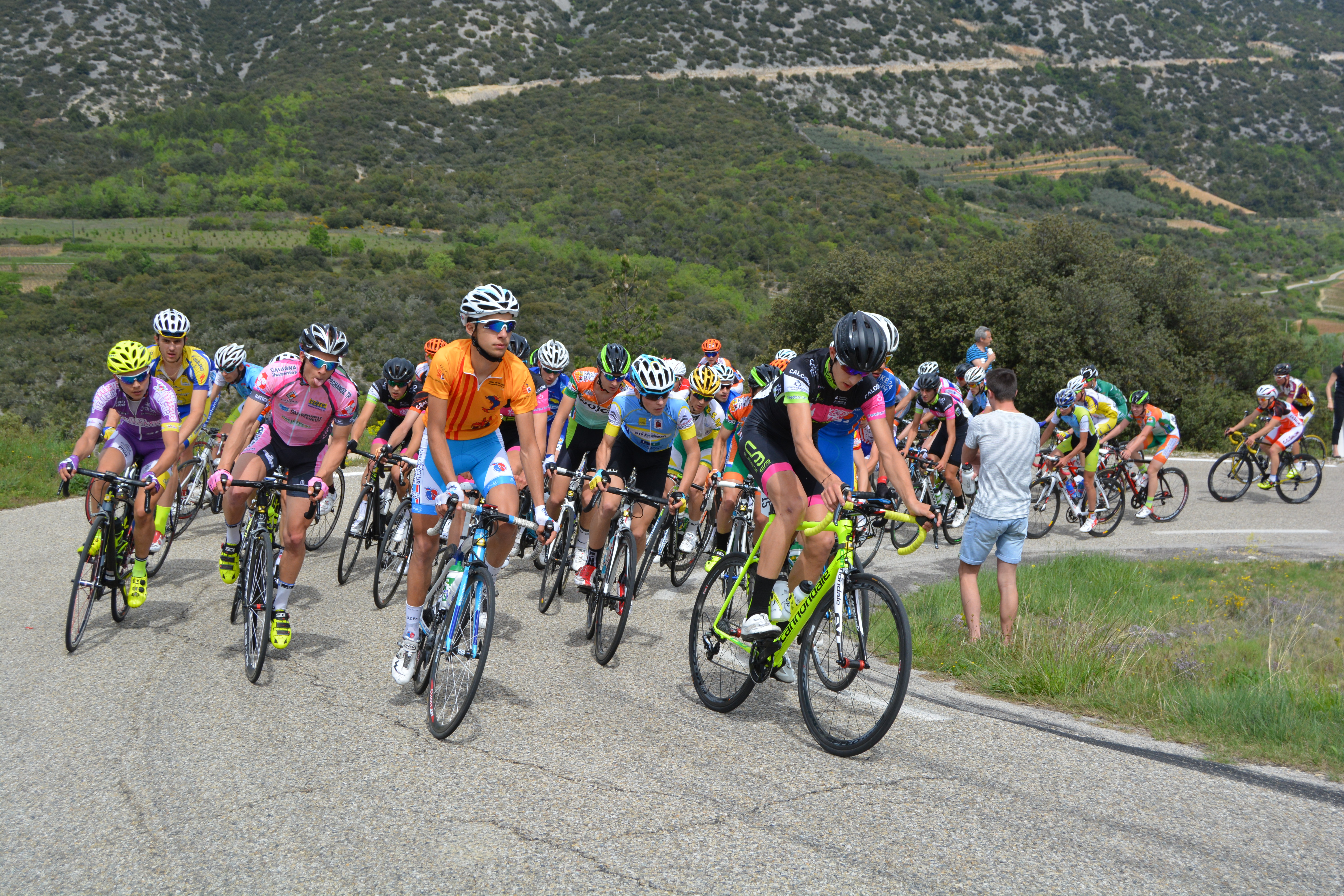 2 juniors du club Maxence et Vincenzo ont pris le départ de la 3ème manche du Tor paca junior à Entrechaux, une course difficile un circuit sélectif de 28kms à faire 4 fois .